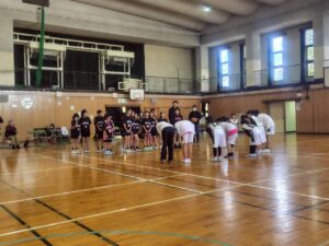 試合の合間にあったフリースロー大会では、しっかりリングを見て打つことができて、何本も決まったときはとても嬉しかったです。最後にはお菓子をもらって、がんばってよかったなと思いました。