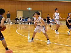 試合前のアップでは、みんなで楽しく体を動かしながらも、集中した空気が流れていました。スタートの掛け声もそろっていて、チームとしてまとまっている感じがしました。試合中は味方に「ナイス!」と声をかけたり、自分がボールをもらいたいときに「ヘイ!」と呼んだりして、コミュニケーションを取りながらプレーできました。体育館の床が普段より滑りやすく、最初は走りにくかったけれど、途中からみんなで「気をつけよう」と声をかけ合ってプレーしやすくしていきました。